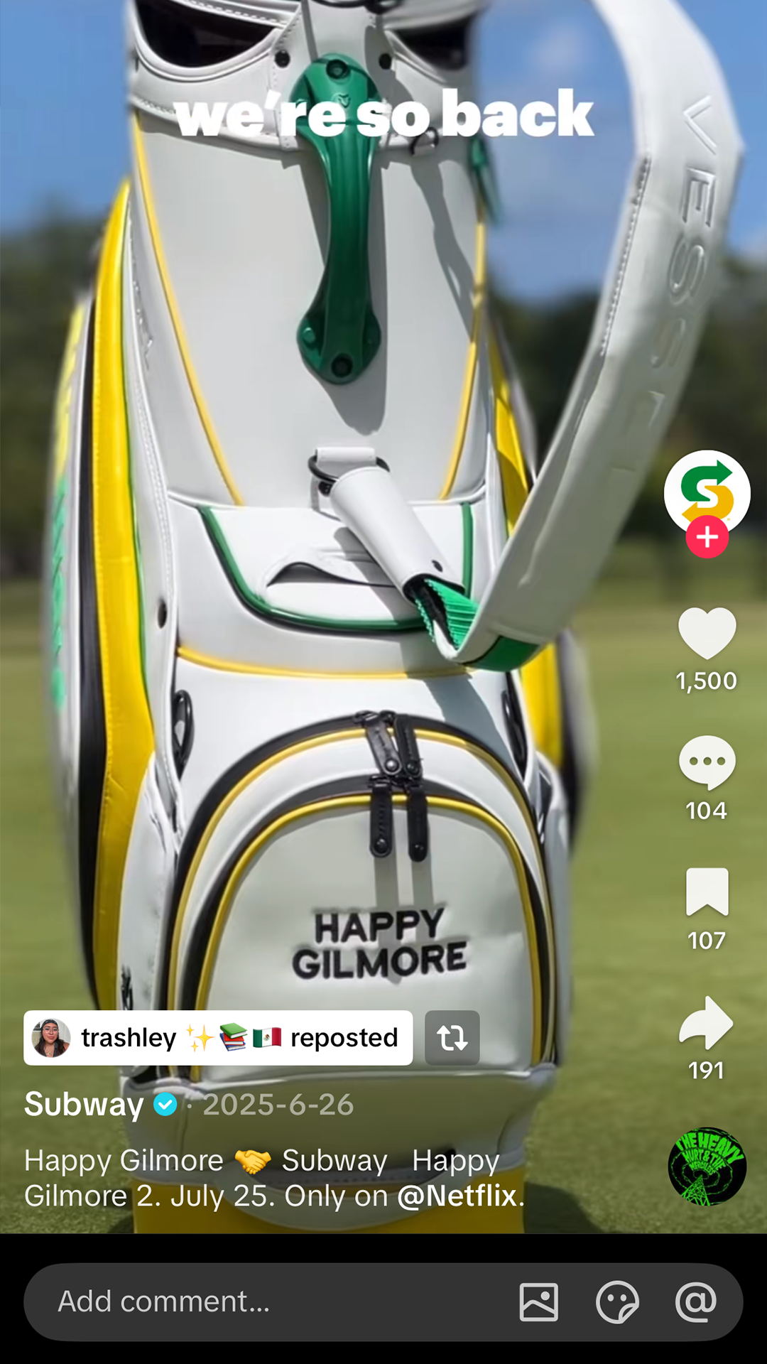 A season-long content program bridging the film’s narrative through product partnerships, from limited-edition Timberland “Butters” to Happy’s official golf bag giveaway and meme-led social moments.