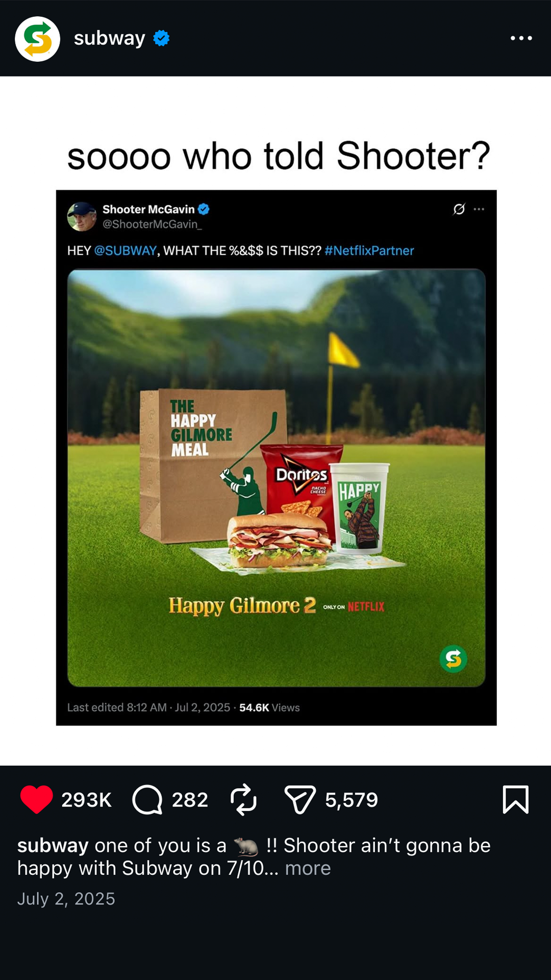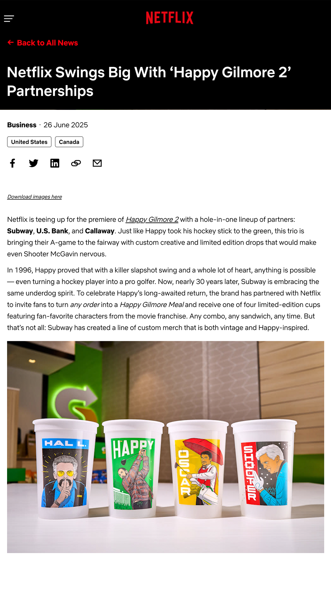 Social rollout celebrating Happy Gilmore 2 through collectible cups, tapping into nostalgia, quotable moments, and the kind of chaotic fun only Shooter McGavin and golf pro Bryson DeChambeau can deliver.